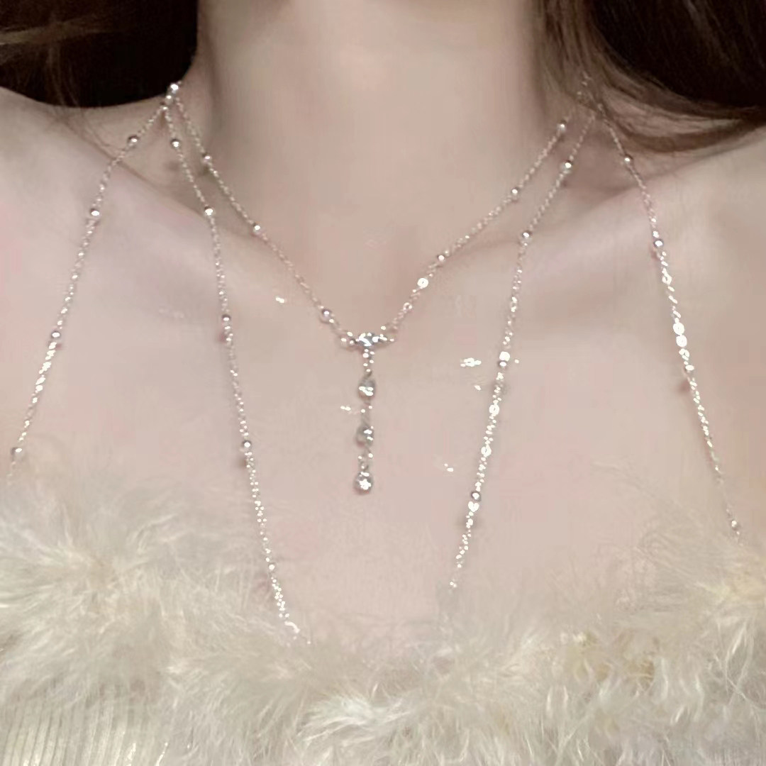 925 silver chest chain body chain sexy bikini 2023 new explosive collarbone chain back chain necklace girl
