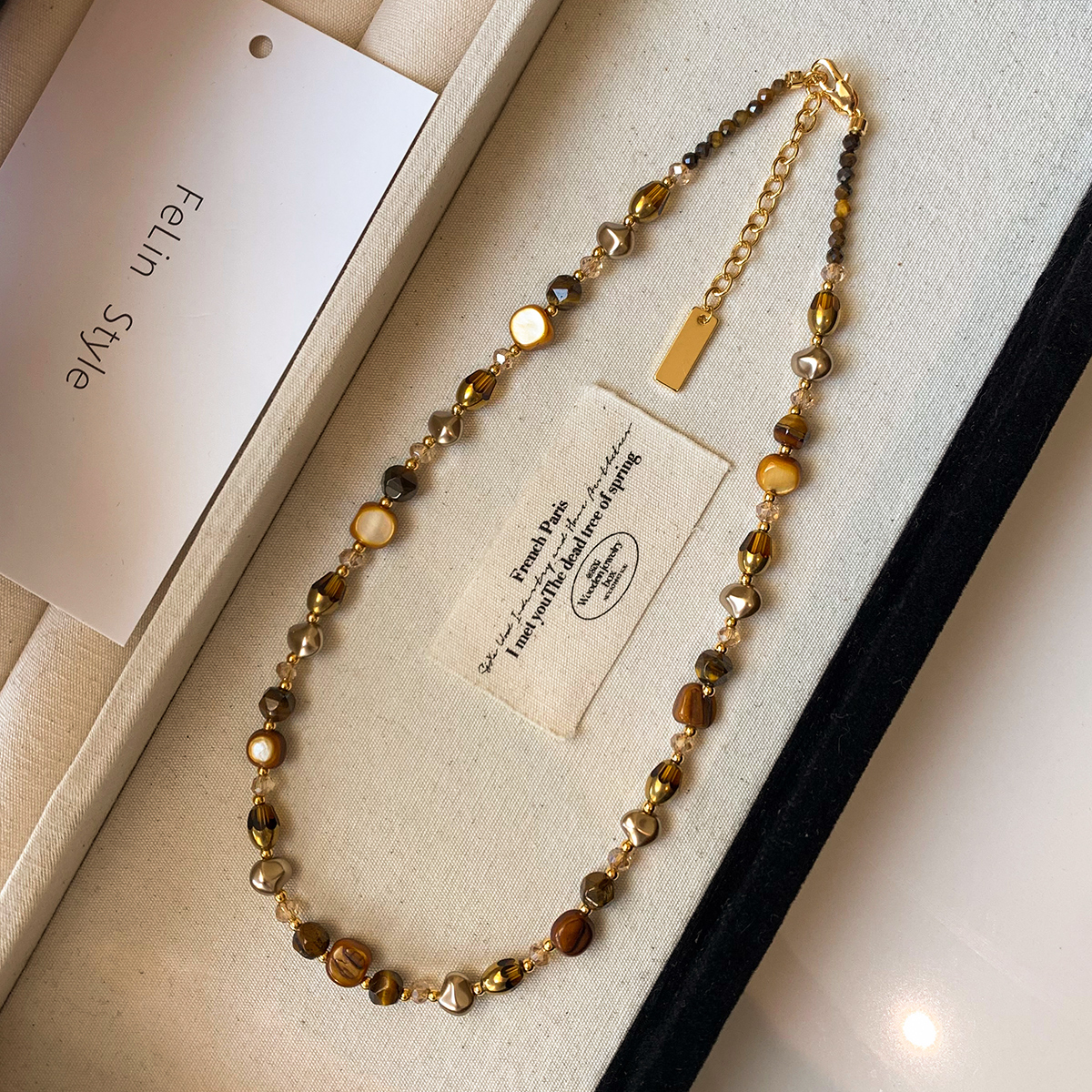 Maillard Natural Tiger's Eye Baroque Pearl Necklace Women's Autumn Winter Accessories 2025 New Vintage Sweater Chain