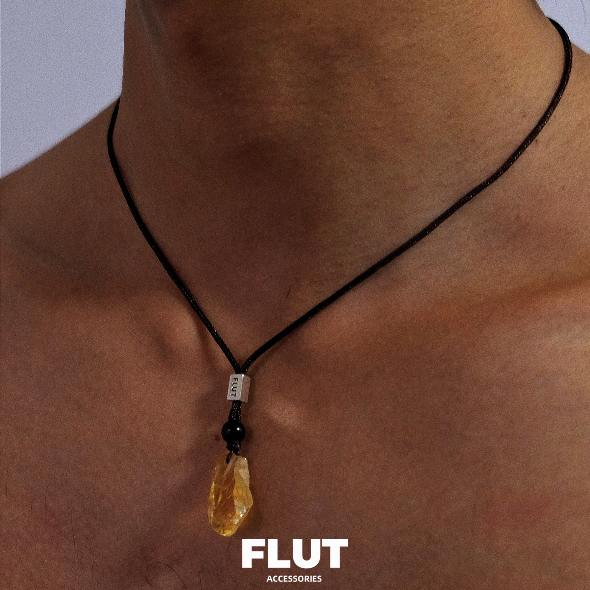 FLUT Original Design Citrine Pendant Necklace Braided Rope Adjustable Unisex Vintage Sweater Chain