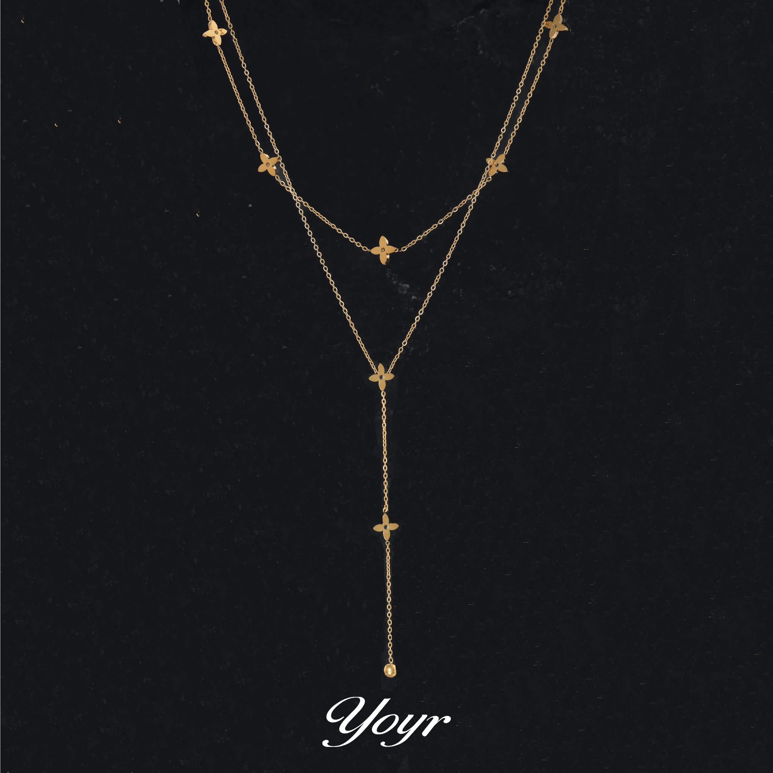 YOYR titanium steel necklace four-leaf flower double-layered necklace high-end sense light luxury Y-shaped chain elegant and simple necklace
