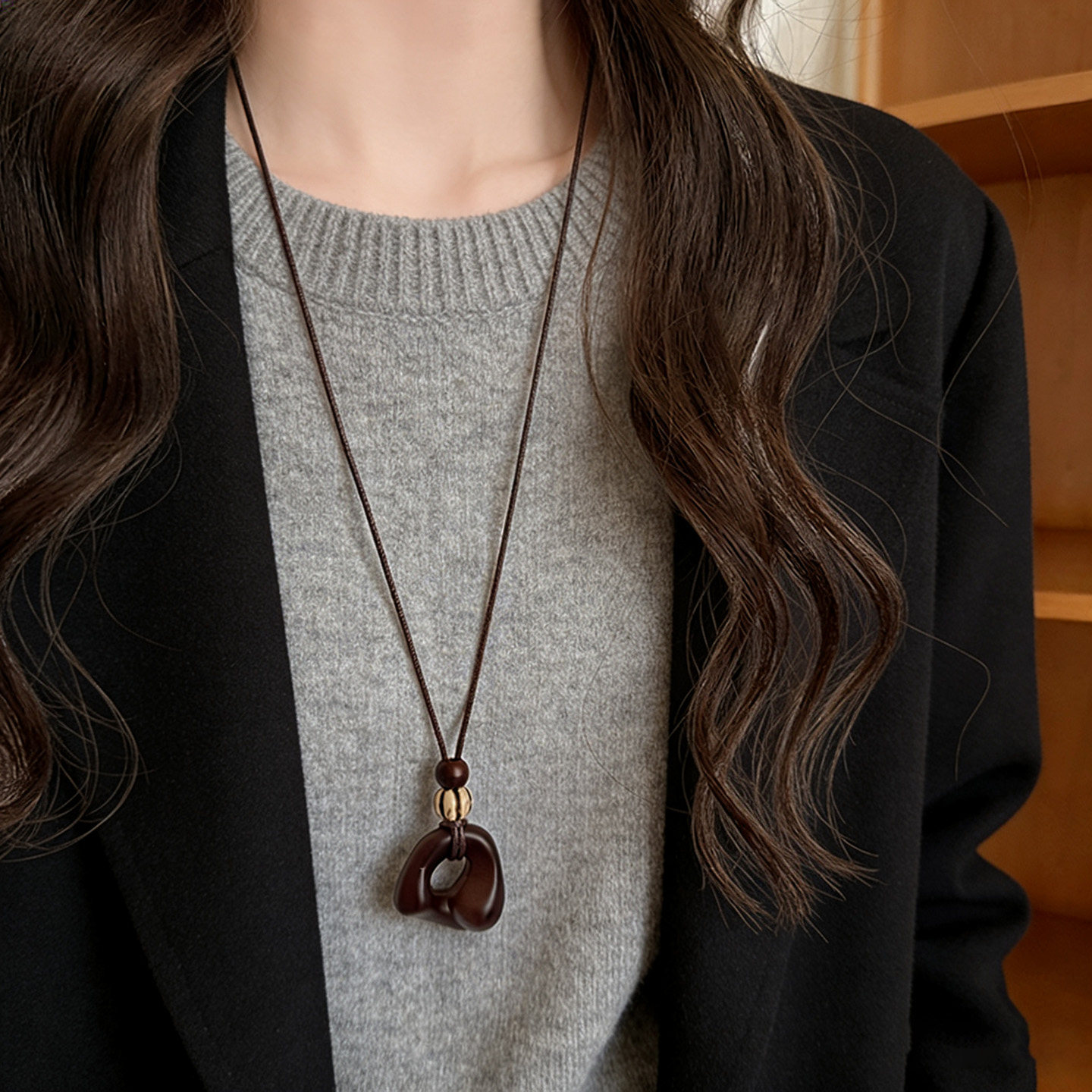 Necklace women's irregular pendant sweater chain autumn and winter Zen coffee color women's high-end long halterneck accessories