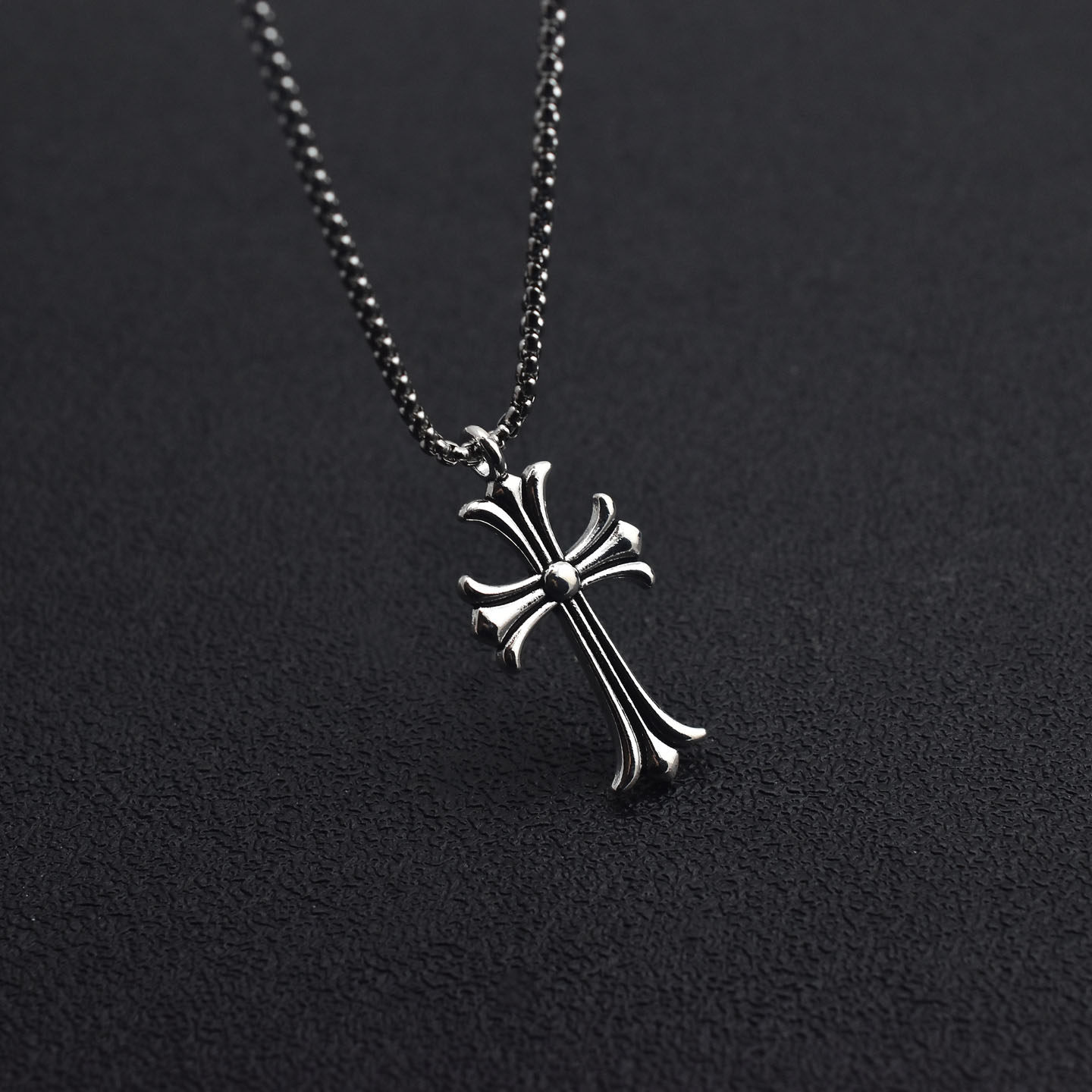 Vintage Antique Silver Cross Pendant Necklace Men and Women Versatile T-Shirt Sweater Chain Sweater Chain Couple Long and Short Necklace