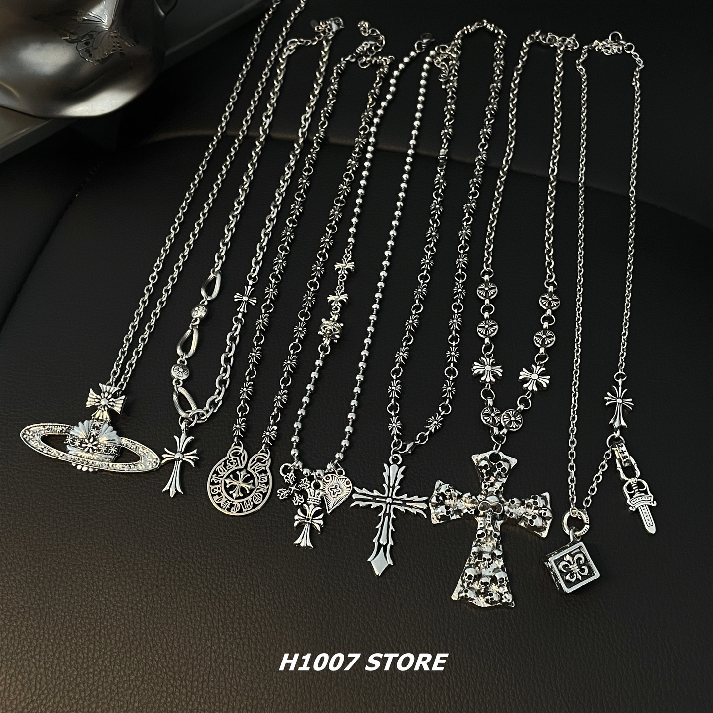 Planet cross flower splicing men's necklace female niche design sense chain sweater chain dark hip hop style collarbone chain