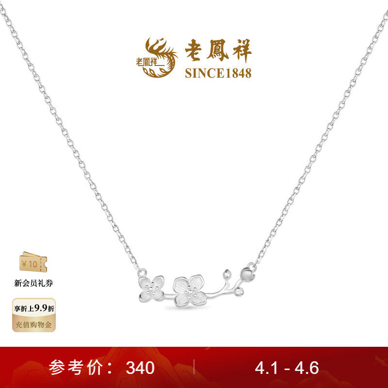 Lao Fengxiang three-dimensional plum blossom 925 new Chinese collarbone chain silver necklace holiday women's gift