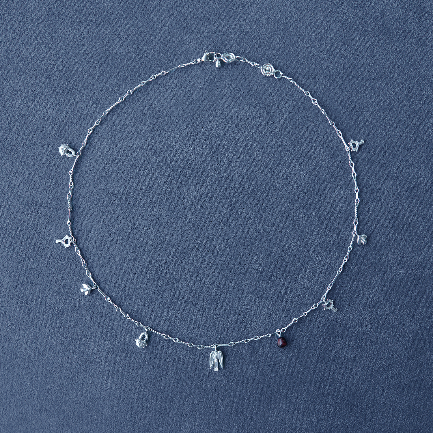 GEM CODE Galaxy Serpentine Collection 925 Silver Snake Year Necklace Natural aquamarine Natural white chalcedony
