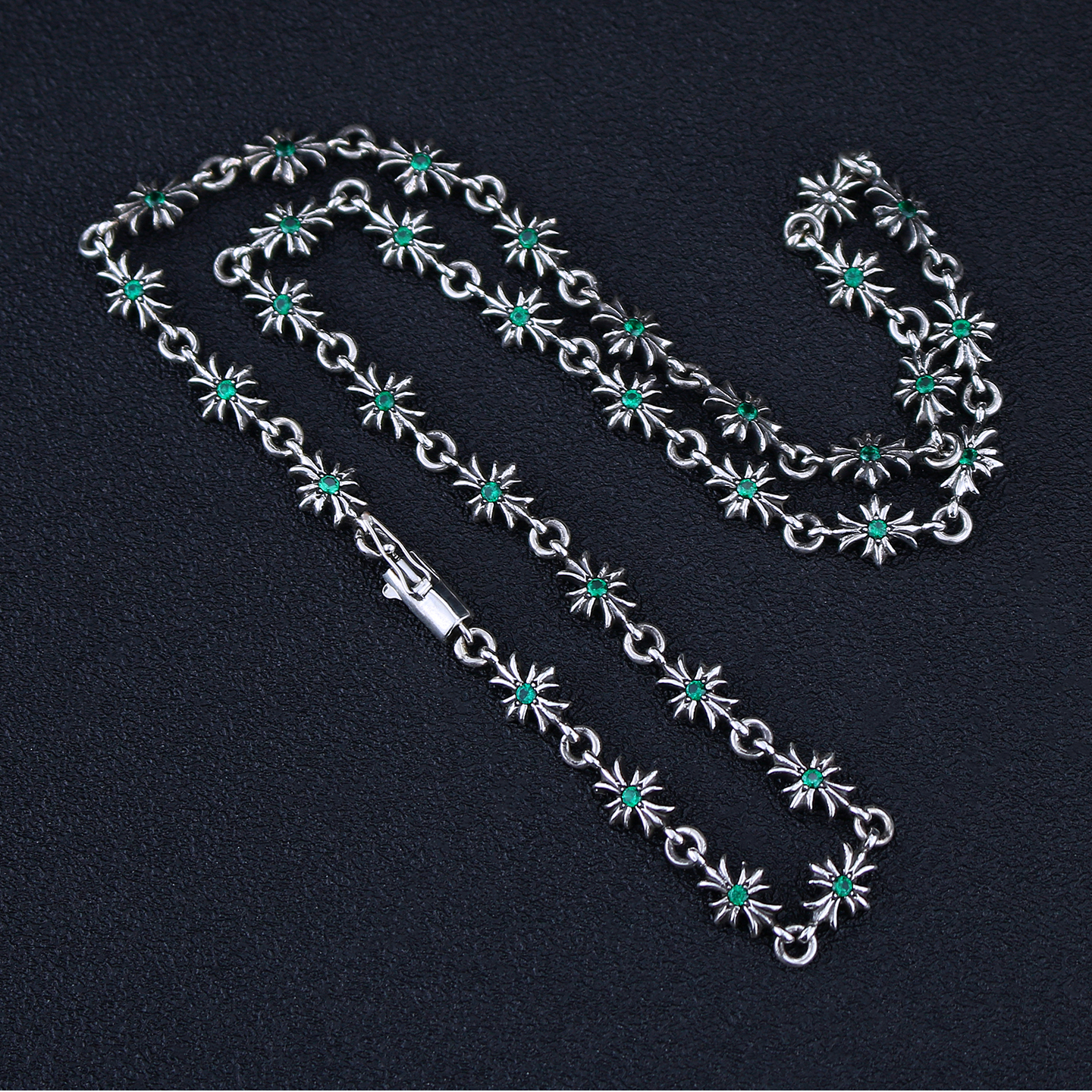 s925 sterling silver with diamonds Tiny E cross necklace men's and women's long and short distressed vintage punk style American silver jewelry