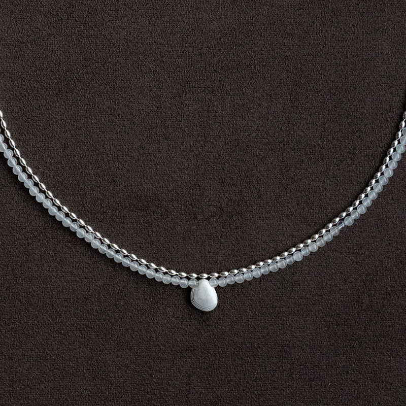 OLIO E ACETO sterling silver white crystal shell double necklace