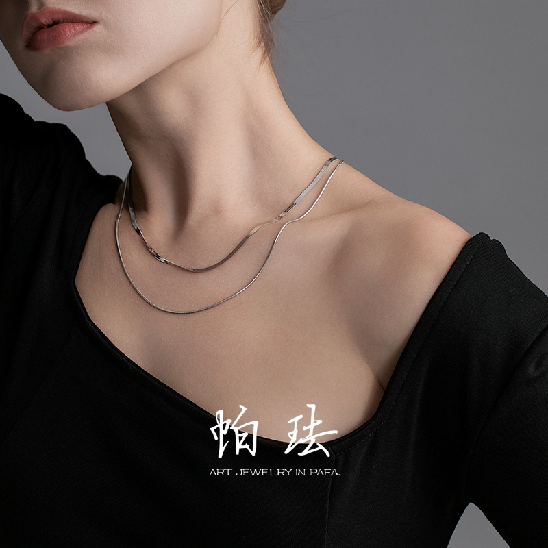 PAFA Ingenuity Collection s925 silver-plated 18K white gold elegant snake bone necklace