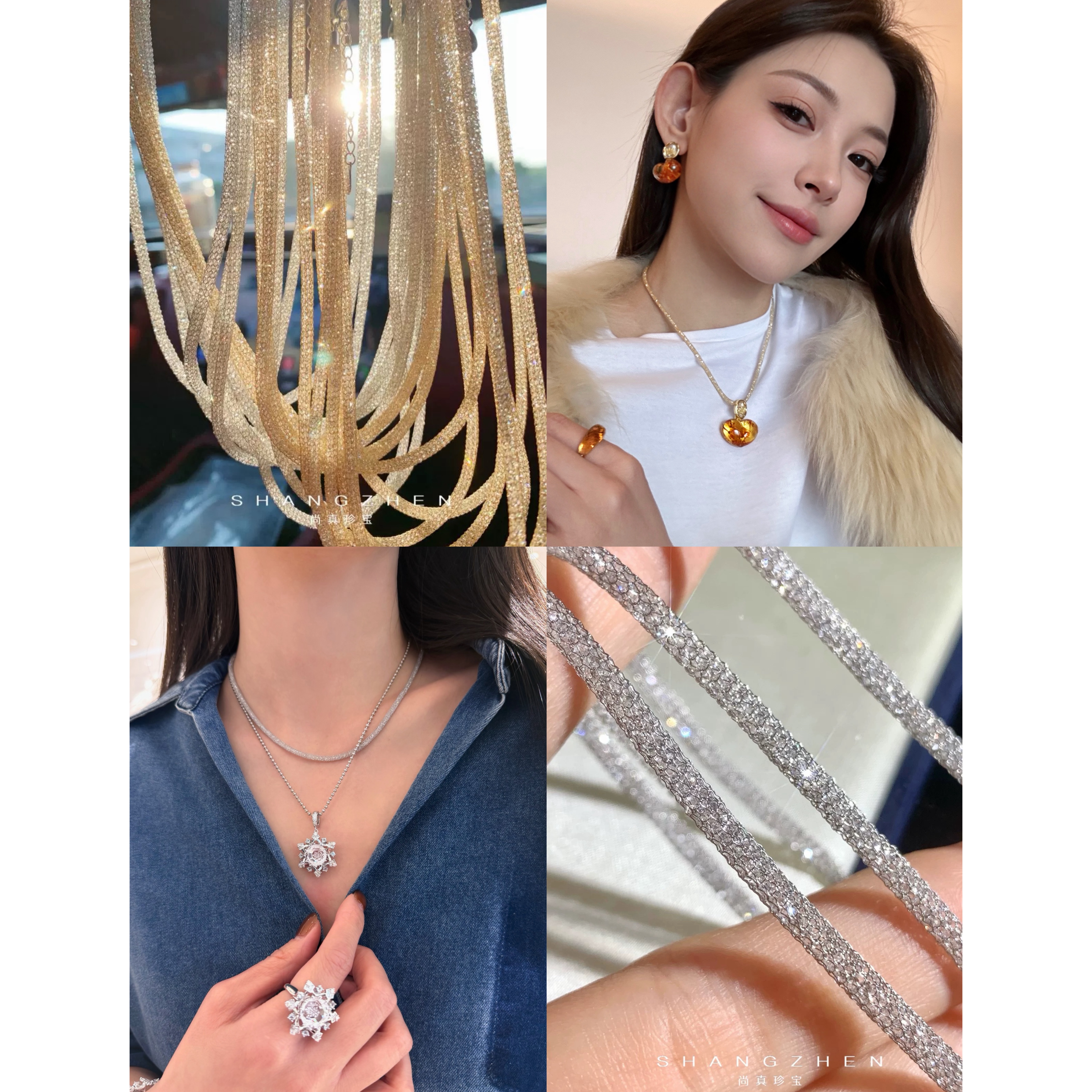 S925 sterling silver tassel earrings necklace women's banquet light luxury niche design collarbone chain necklace accessory set