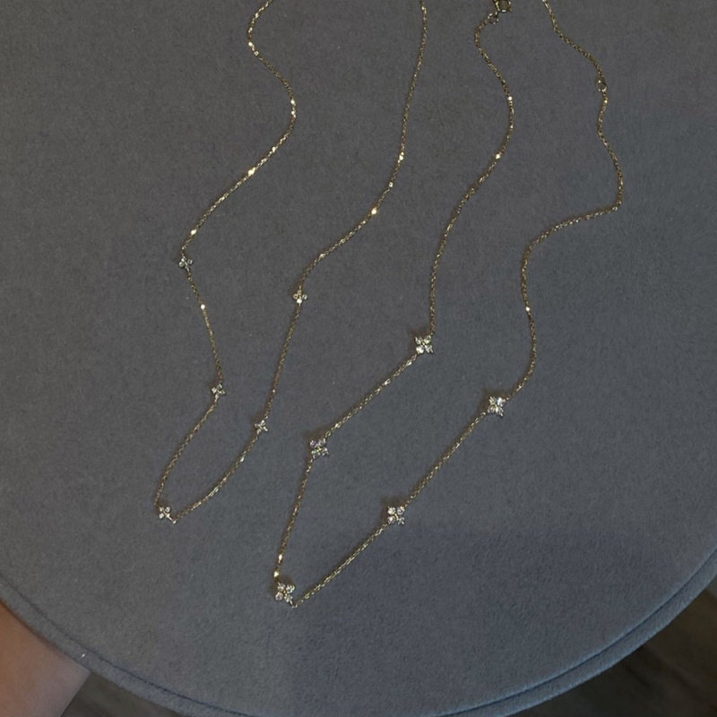 ROMANTIC925 sterling silver plated 18K gold mini version glitter diamond four-leaf clover baby's breath necklace simple collarbone chain for women