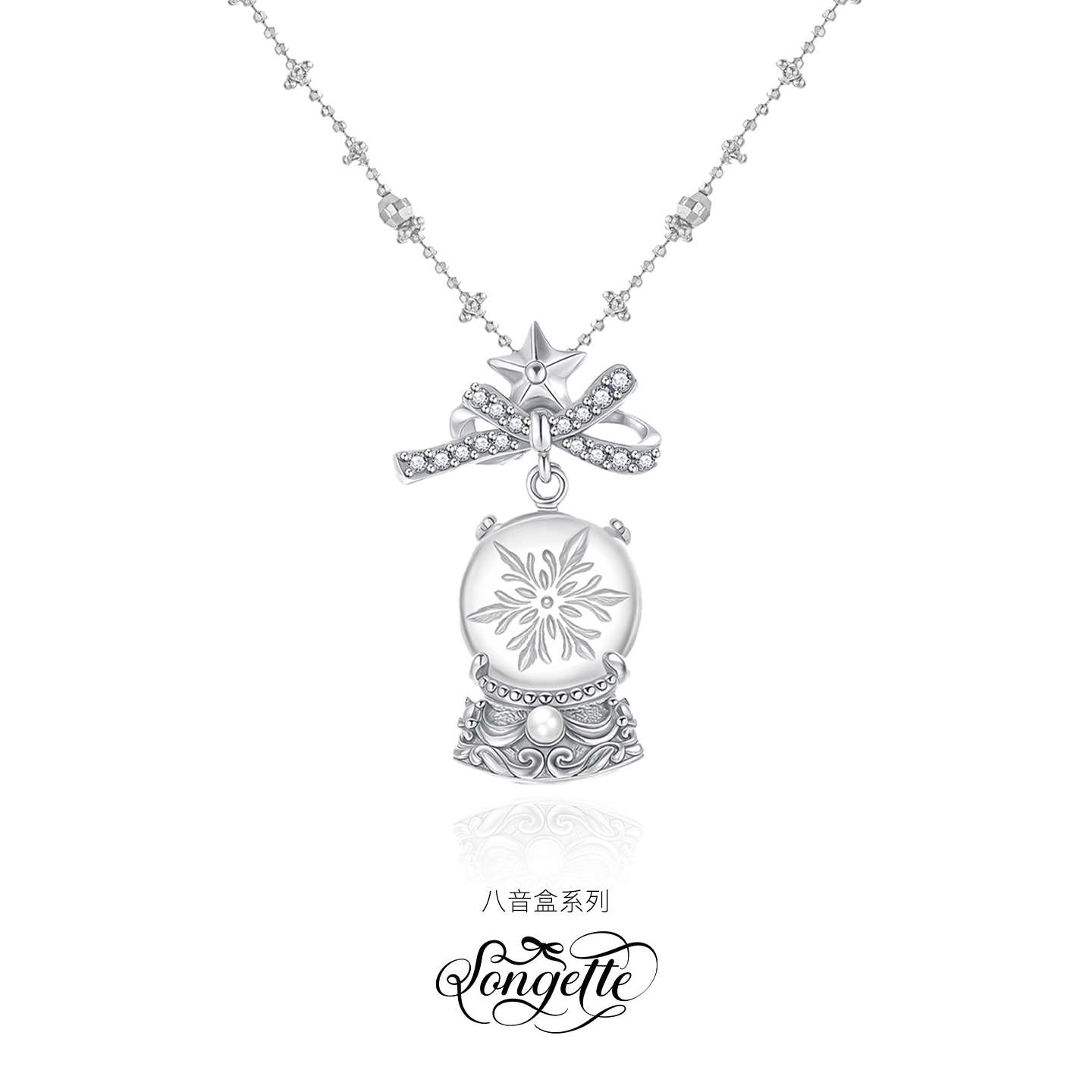 Songette "Music Box Series" original design sterling silver white crystal ball pearl snowflake necklace collarbone chain