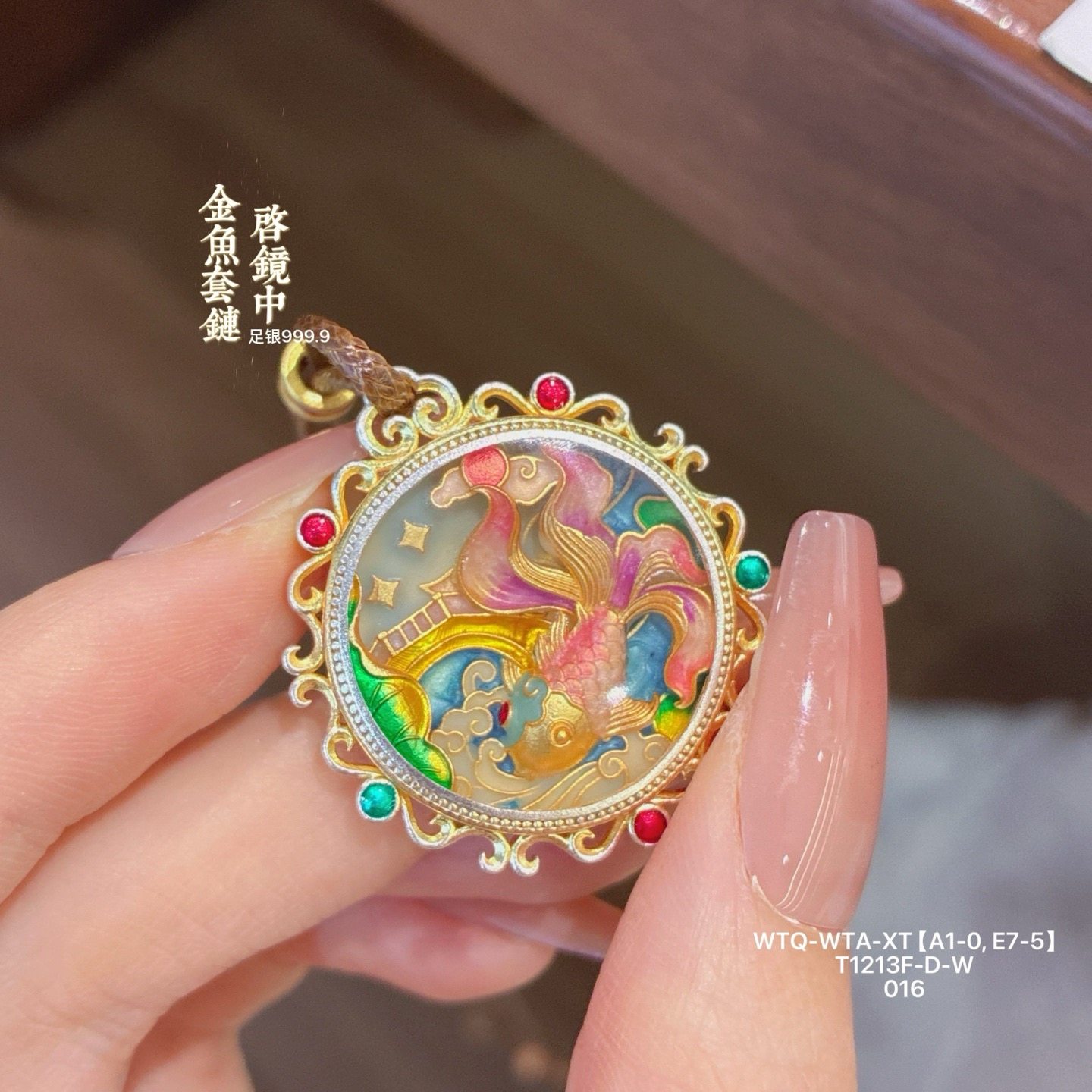 "Fish in the Mirror" pure silver 9999 sterling silver pendant enamel colored koi new Chinese style necklace New Year gift