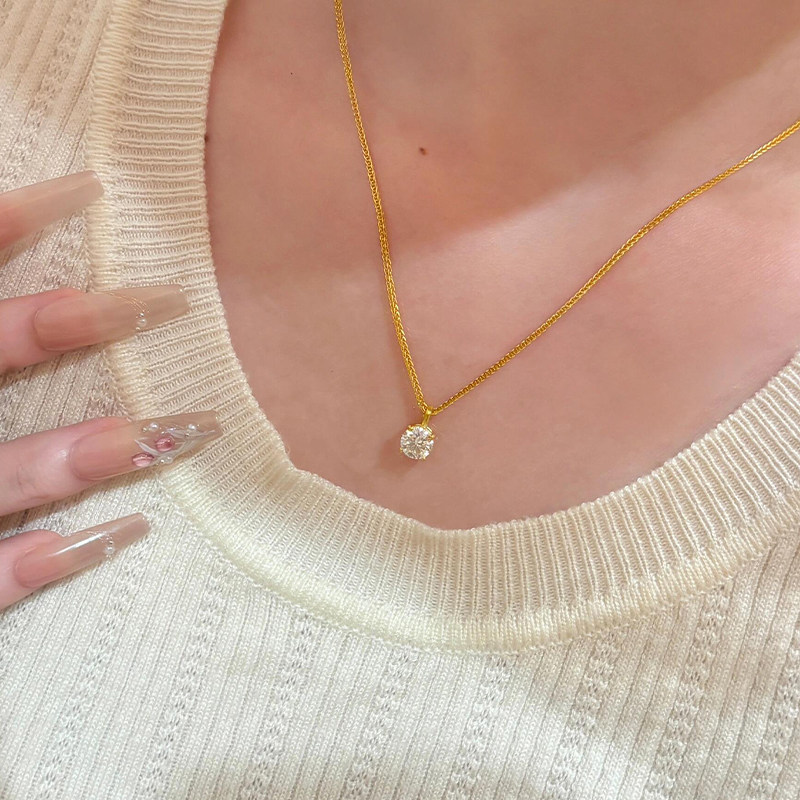 Maritime Rover gold moissanite bubble small drip necklace women's new 999 pure gold pendant birthday gift for girlfriend