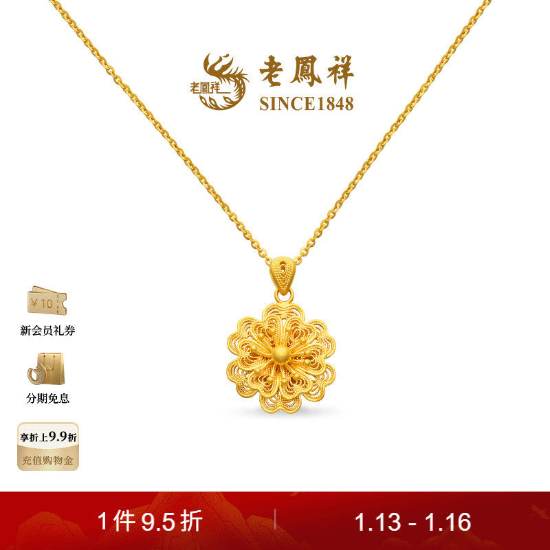 Lao Fengxiang Treasure Gold Qing Series Peony Filigree Gold Necklace Female Gift to Mother New Year's Gift