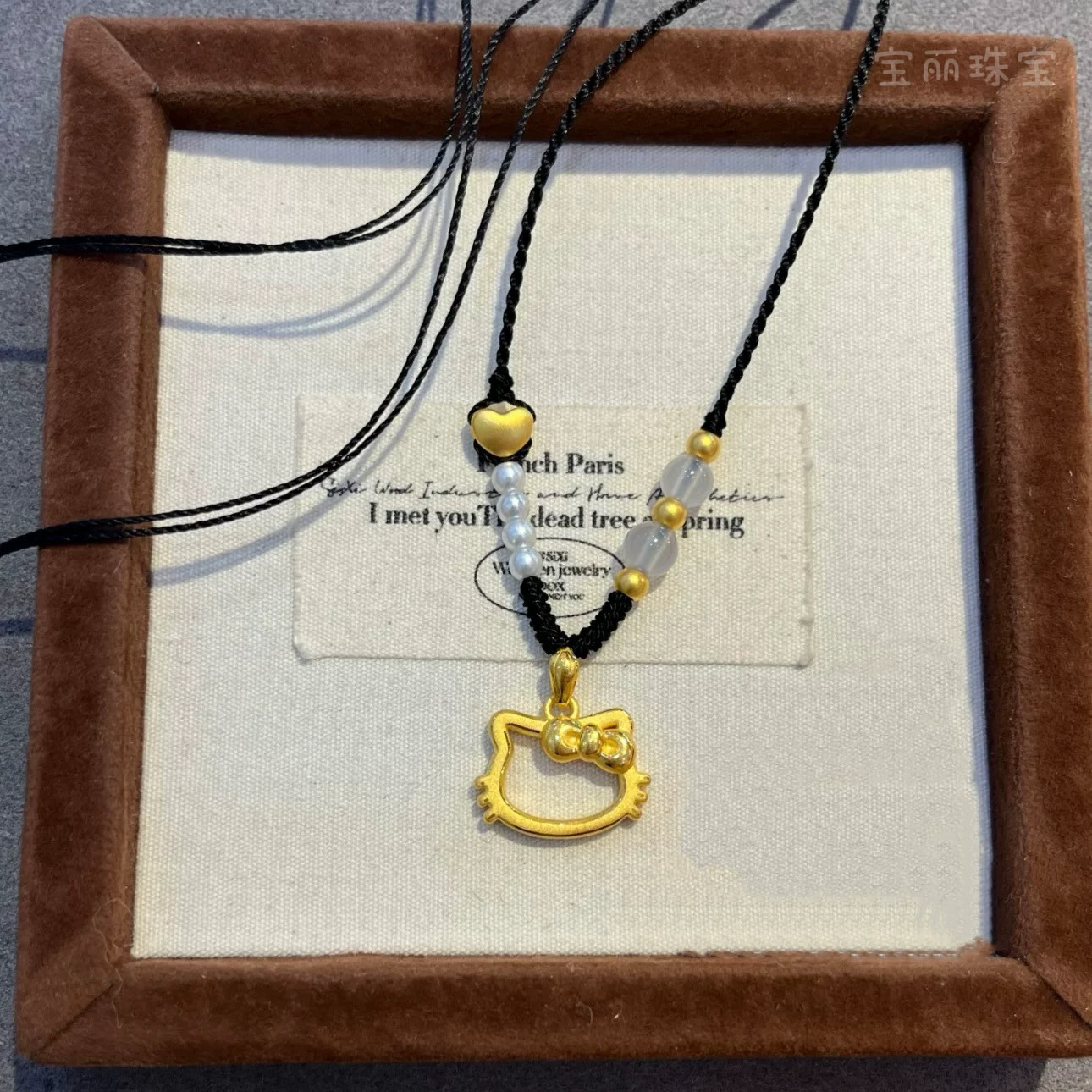 Shenzhen water shell pure gold 999 large hollow KT cat pendant gold hello kitty kitty kitty cat necklace for girlfriend