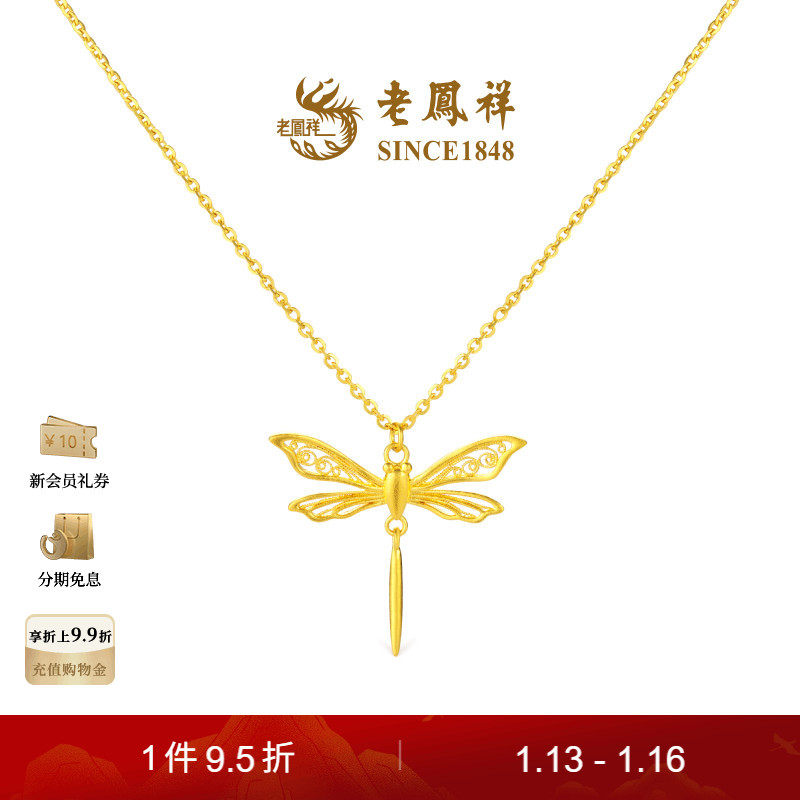 Lao Fengxiang Treasure Jinqing series filigree hollow dragonfly gold pure gold necklace priced women's New Year's gift