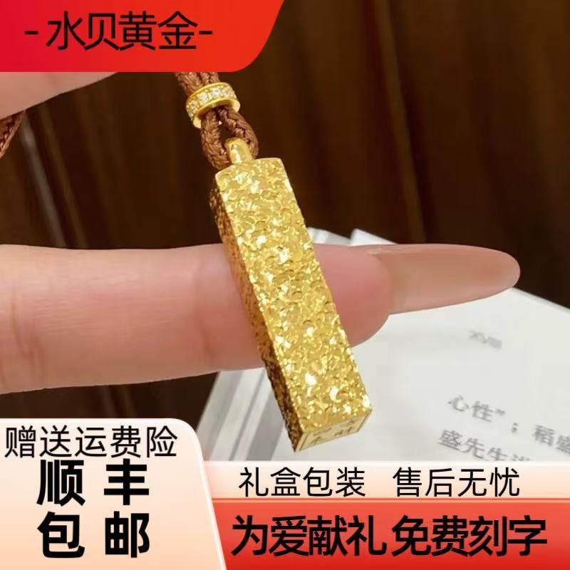 Shenzhen Shuibei gold small gold bar pendant 999 pure gold crushed ice ice from all directions to the wealth square brick broken gold sweater chain
