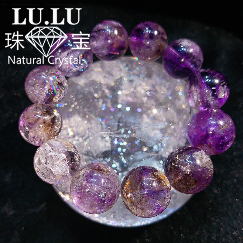 Cherry blossom super seven tourmaline Peter gold luck stone color ghost blue moonlight aquamarine salt source titanium hair agate crystal women's bracelet