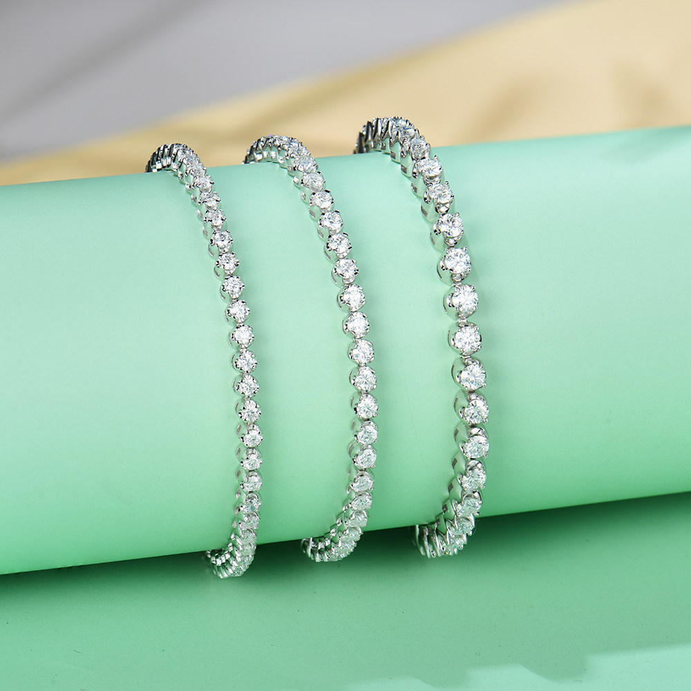 Zhuo Die Jewelry sterling silver plated 18K white gold full diamond moissanite bracelet female imported D color moissanite bracelet through the diamond test pen