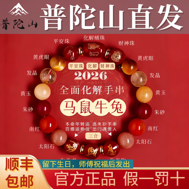 Putuo Mountain Qingxiang Tai cinnabar bracelet genuine official flagship store women's 2026 horse natal year bracelet for men