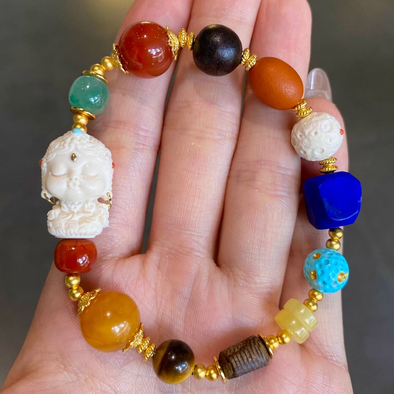 Single circle bracelet natural mammoth tooth carving Duobao bracelet women's bracelet for girlfriend's girlfriend's birthday gift