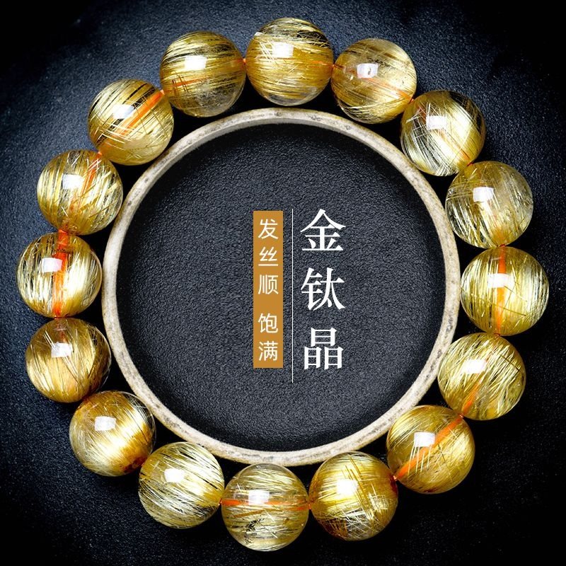 Collectible natural gold titanium crystal bracelet for women cat's eye slate titanium crystal male smooth hair full citrine bracelet