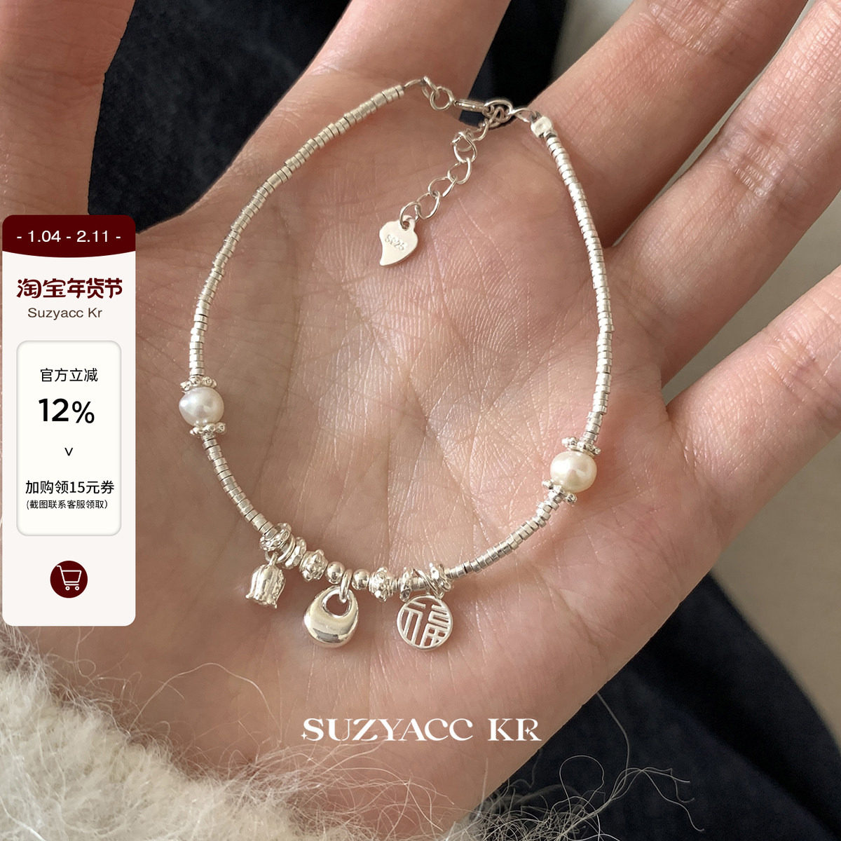 suzyacc kr broken silver silver tuo fu brand sterling silver bracelet simple niche design sense versatile beaded bracelet