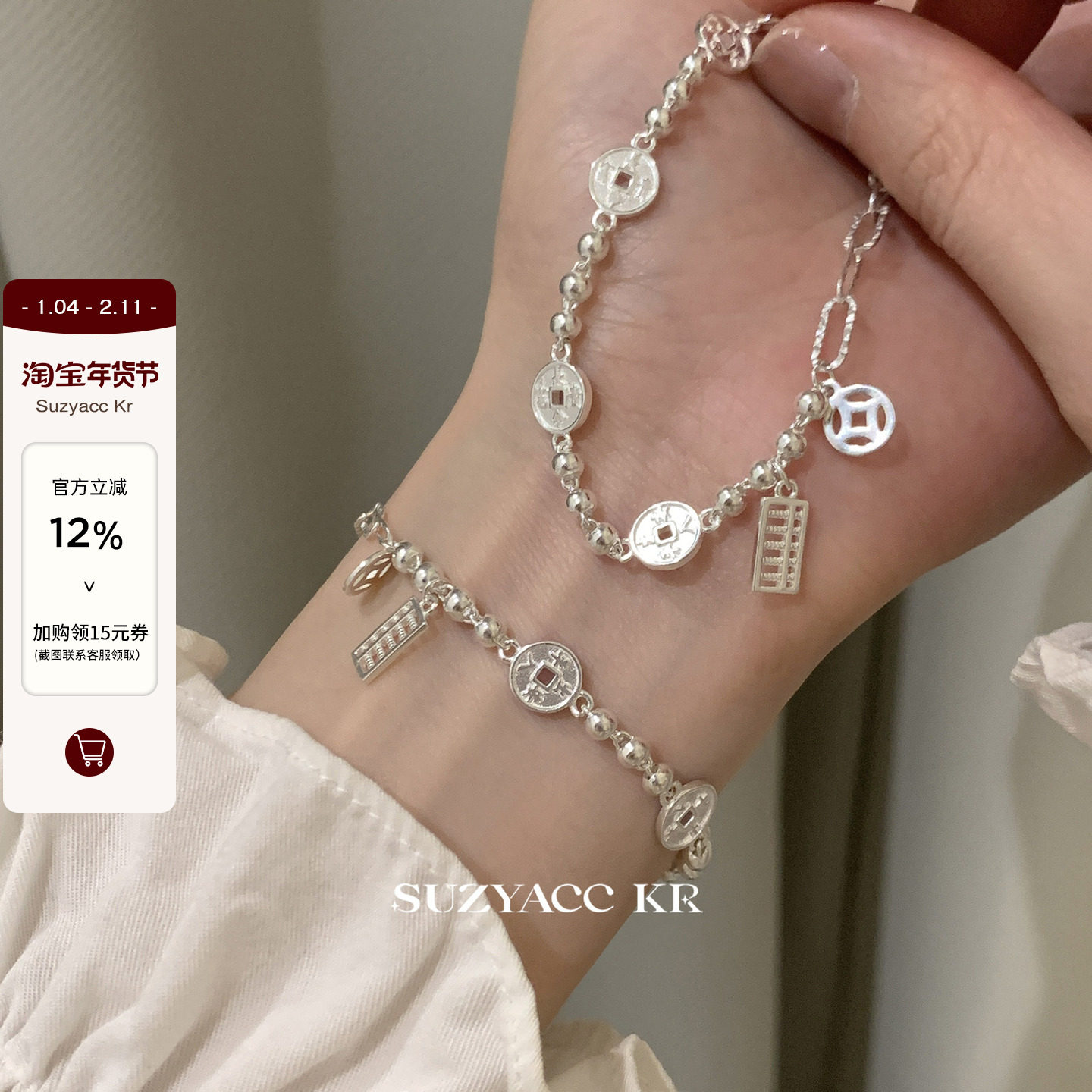 suzyacc kr simple high-end sterling silver coin abacus bracelet women's light luxury niche exquisite and versatile hand jewelry