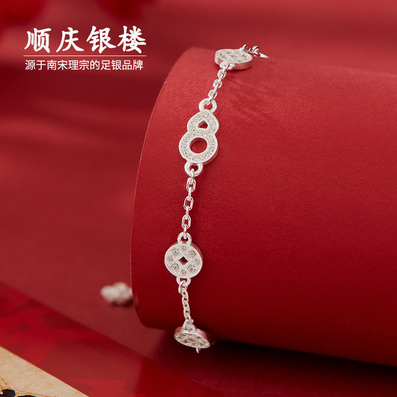 Shunqing Yinlou Pure Silver 9999 sterling silver Qianxi bracelet women's simple fashion sweet style gift for girlfriend girlfriend