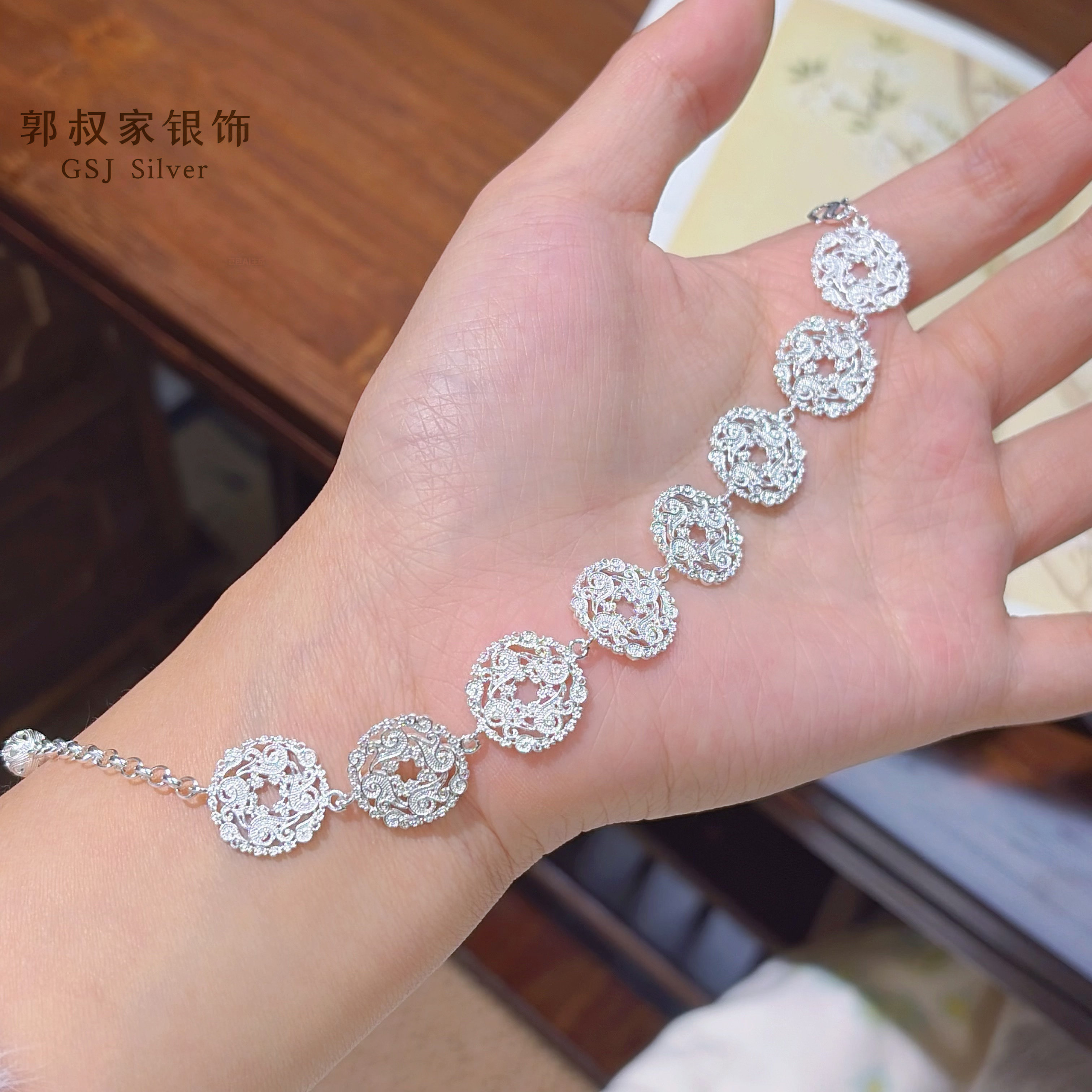 Fengchun New Chinese Peacock Sterling Silver Bracelet Foot Silver 990 High-end Niche Design Adjustable Filigree Bracelet