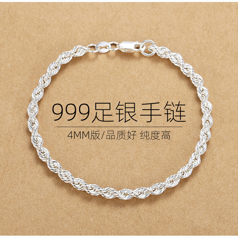 Gift certificate 999 sterling silver men's bracelet women's couple twist single loop trendy bracelet foot silver bracelet gift