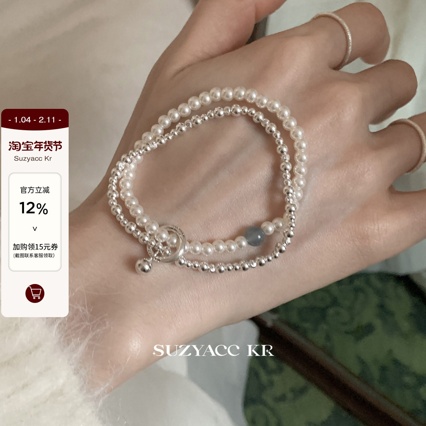 suzyacc kr double-layer stacked sterling silver beaded bracelet light luxury temperament niche high-end sense for girlfriends hand jewelry women