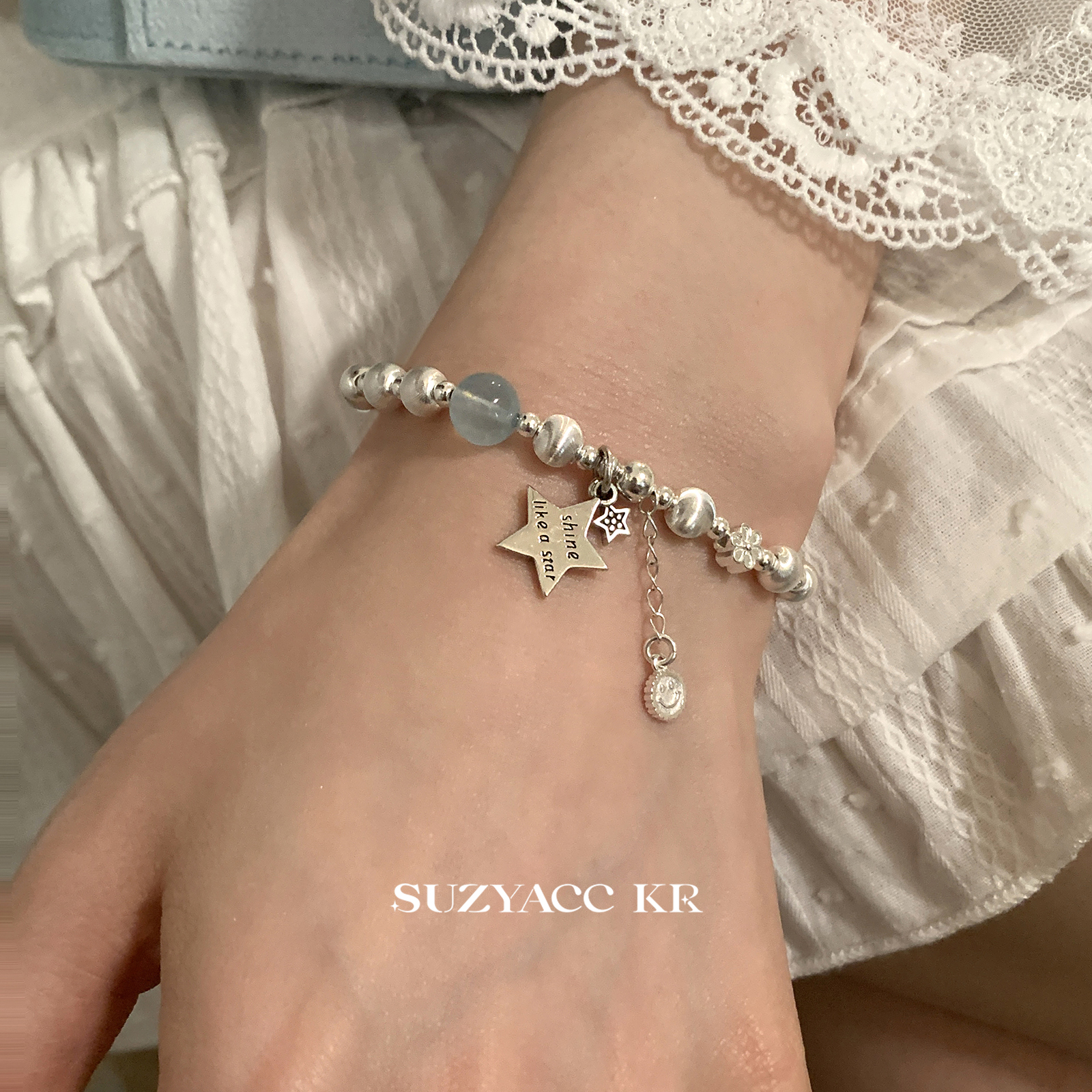 suzyacc kr sterling silver aquamarine laser cat eye bead bracelet light luxury niche exquisite fresh high-end sense hand jewelry