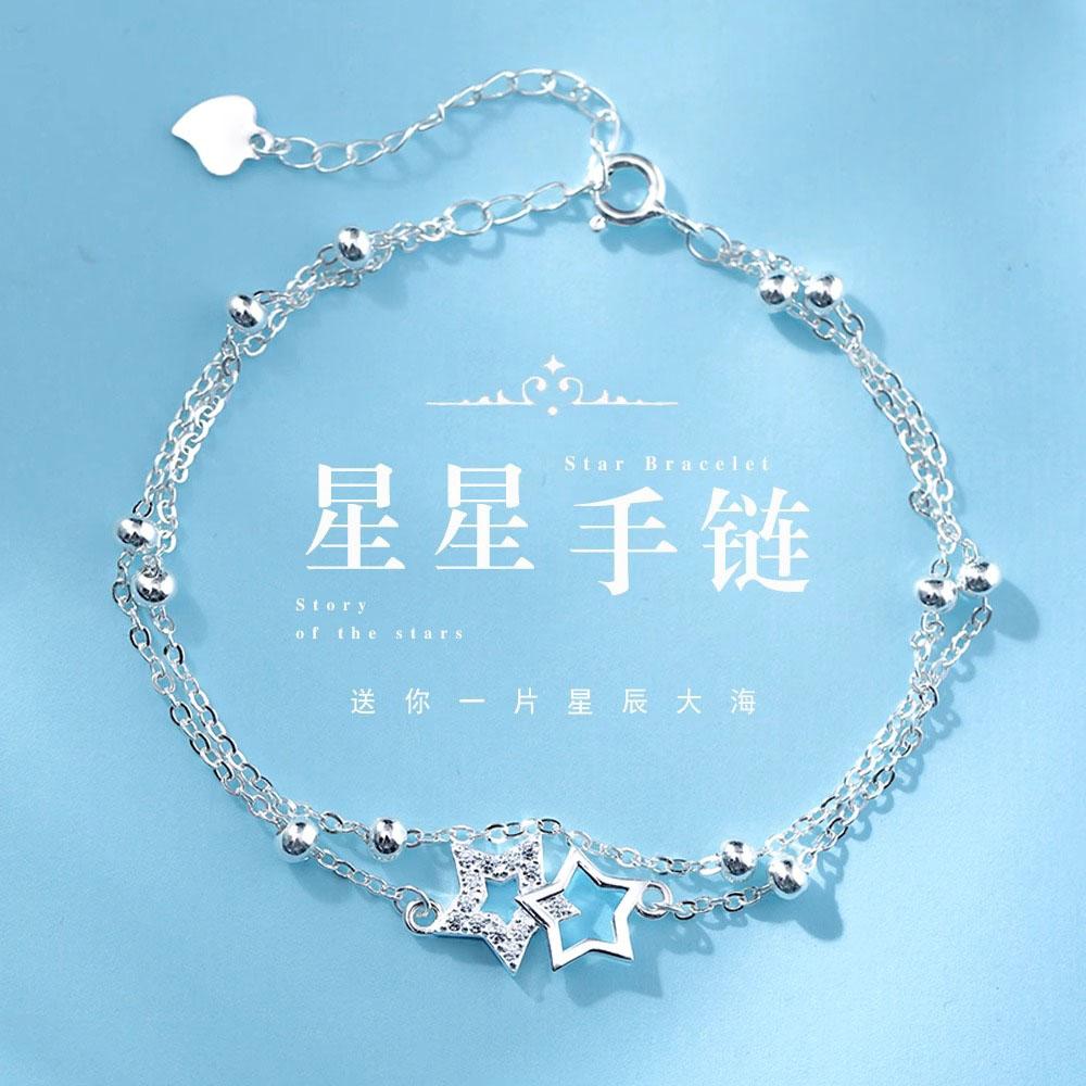 S999 sterling silver DIY double-layer bracelet girls' light luxury niche design exquisite high-end sense birthday gift for girlfriend