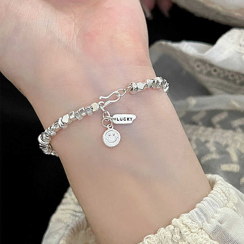 S925 silver broken silver bracelet niche design smiley lucky brand sterling silver bracelet women's 2024 new hand jewelry