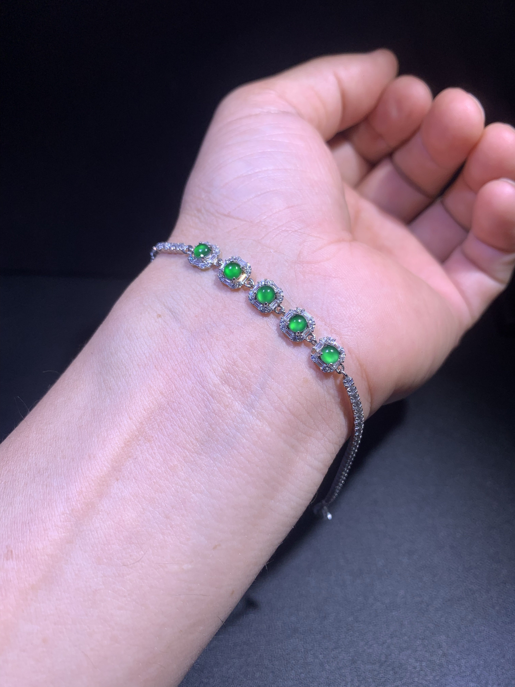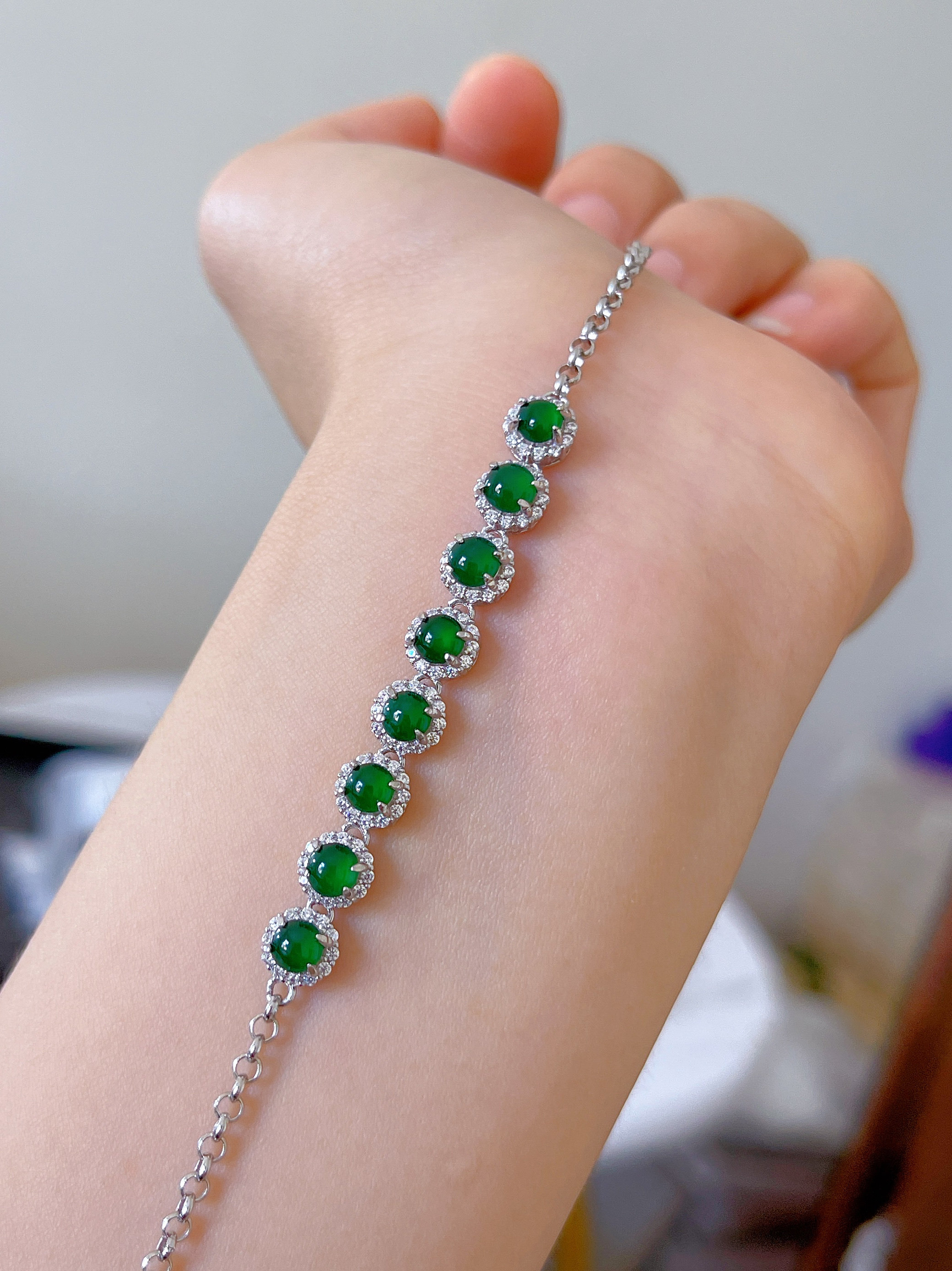New jade bracelet women's dangerous material natural full green egg face s925 silver inlaid A goods yang green jade bracelet advanced card 4