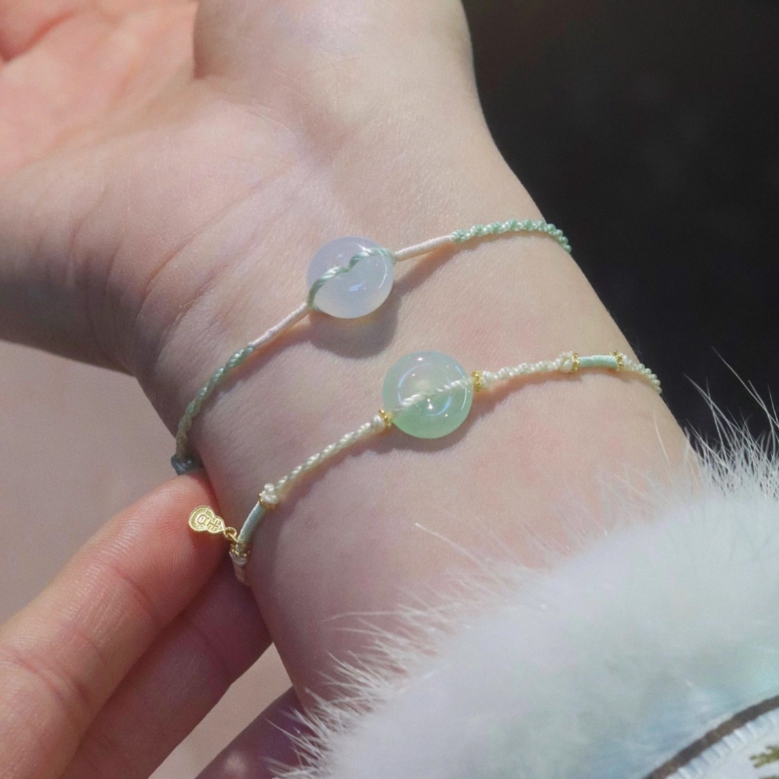 Pearlescent & jade single circle bracelet about 7*6mm - diversity hair one