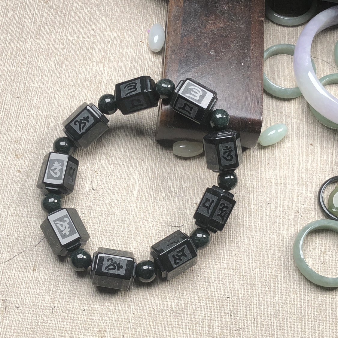 Longci Yuan jade black chicken seed jade black chicken six-character mantra square pillar bracelet Myanmar fidelity A goods road road passage