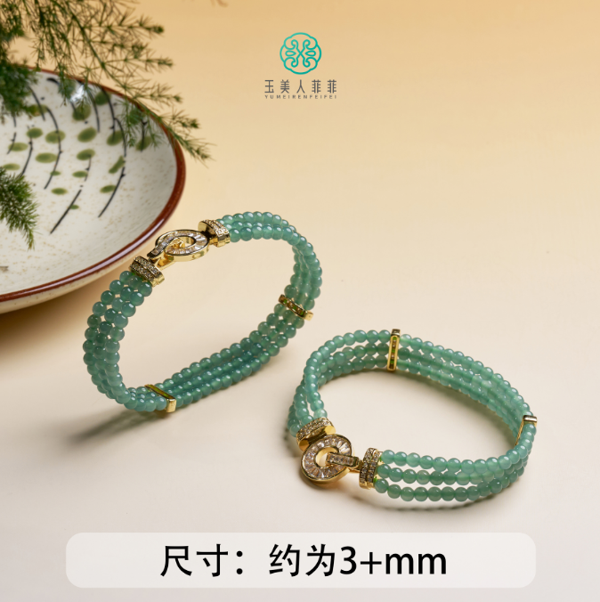Natural Guatemalan blue water jade millet bead bracelet new Chinese style bracelet broken silver ancient method white bracelet