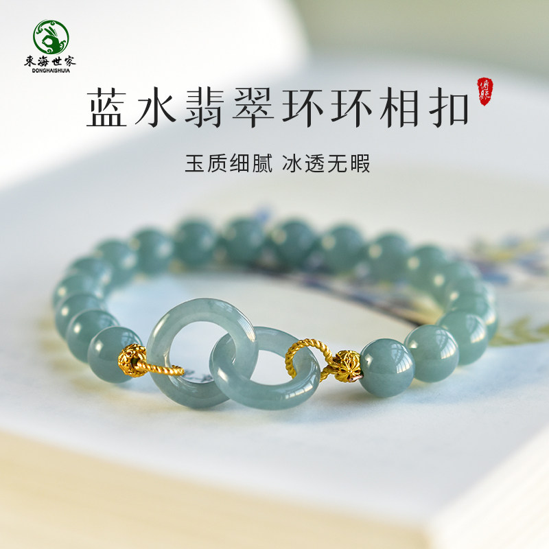 Blue water jade bracelet for women and men East China Sea crystal agate chalcedony jade loose beads ring interlocking jade bracelet