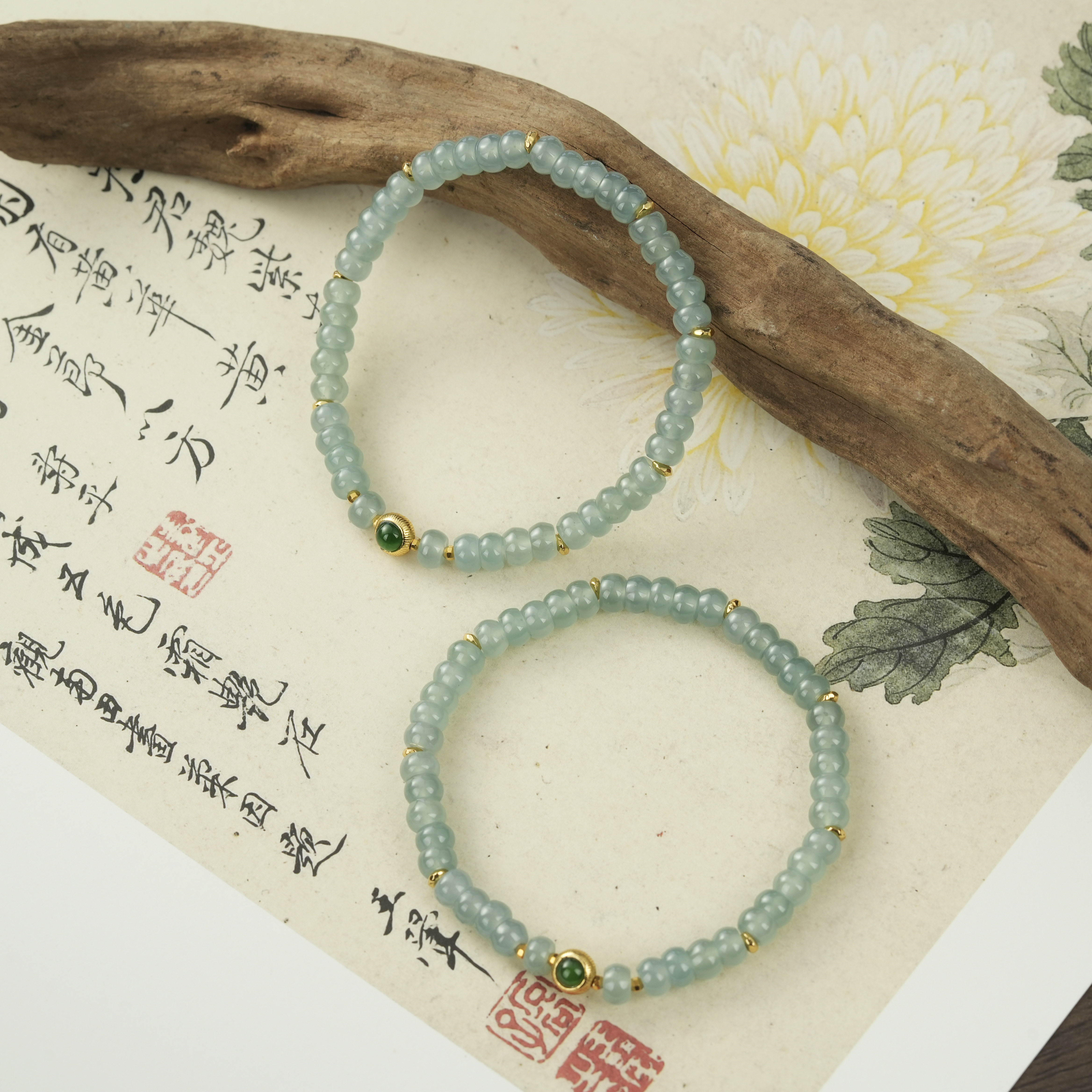 Pearlescent treasure / jade single circle - donut abacus bead bracelet about 5mm - diversity hair one