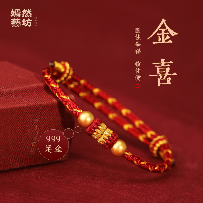 Three lives and three generations 999 pure gold gold transfer beads red rope bracelet male and female couples in the birth year hand-woven bracelet