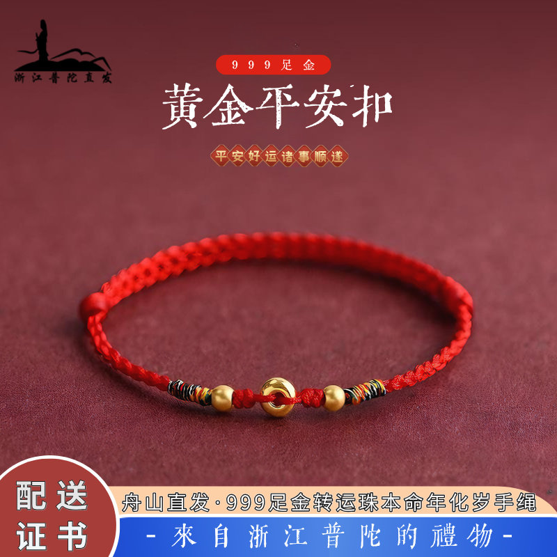 Putuo Mountain Miaohai 999 feet gold safety buckle red rope bracelet men's and women's natal year transfer beads woven bracelet