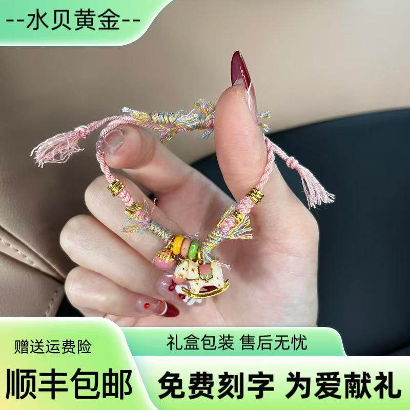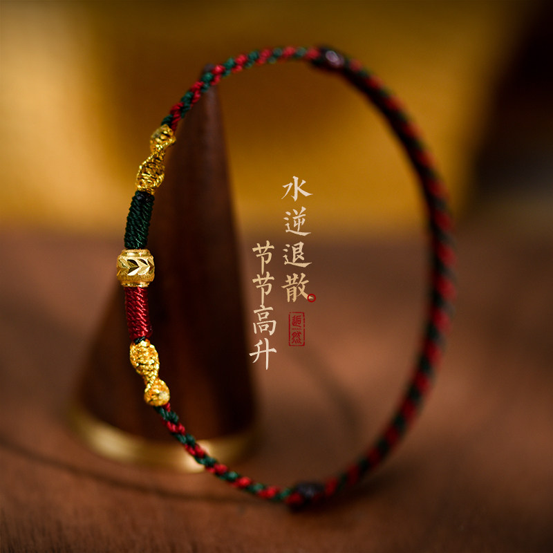 Gold transfer beads, red rope bracelets, anklets, men's and women's extremely fine and simple woven braided bracelets, natal year, safety transfer beads