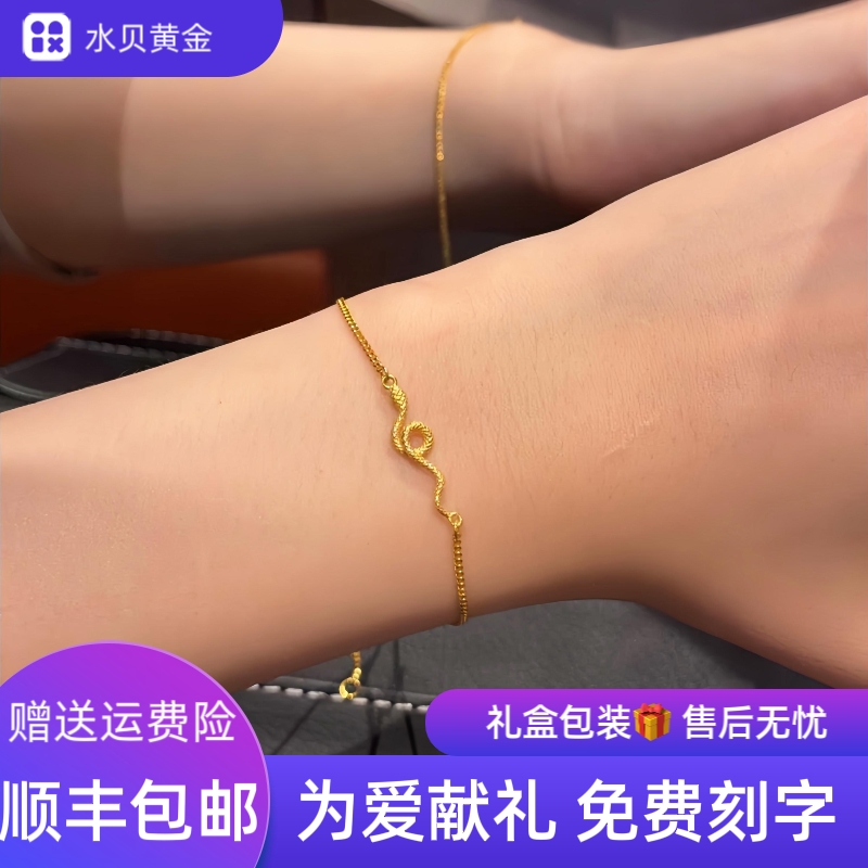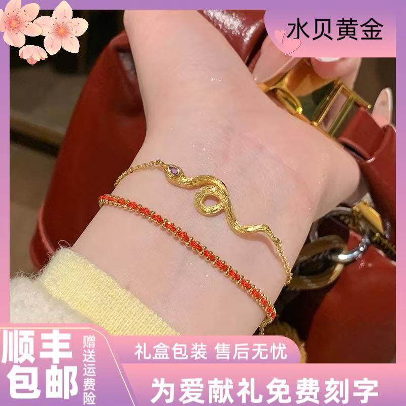 Shuibei gold 2025 pure gold small golden snake bracelet zodiac snake baby red rope bracelet 100 days gift for the first full moon