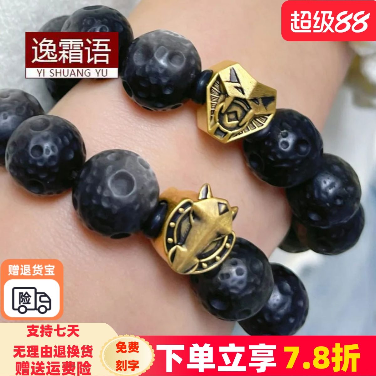999 foot gold copper coin Pixiu retro gold transfer bead bracelet male black 3D hard gold national tide mythical beast gluttonous battle armor