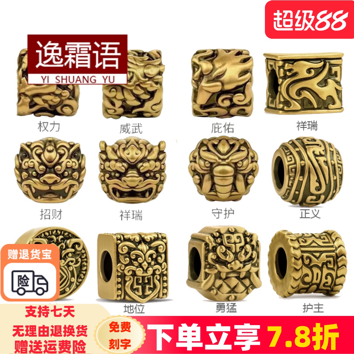 999 foot gold national tide mythical beast Pixiu/unicorn retro gold transfer bead male and female generals war armor tattoo food dream tapir