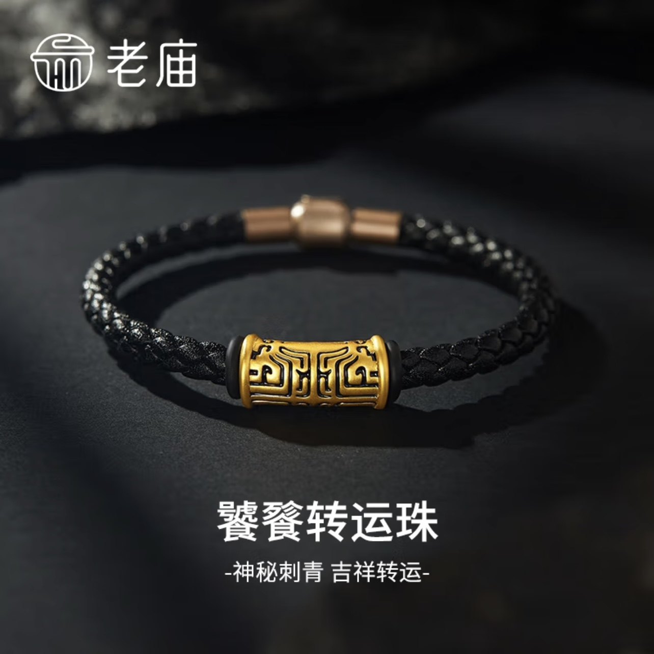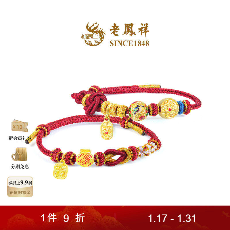 Hong Kong Chow Tai Fook counter 999 pure gold zodiac sheep and horse mutual prosperity gold transfer beaded leather rope bracelet