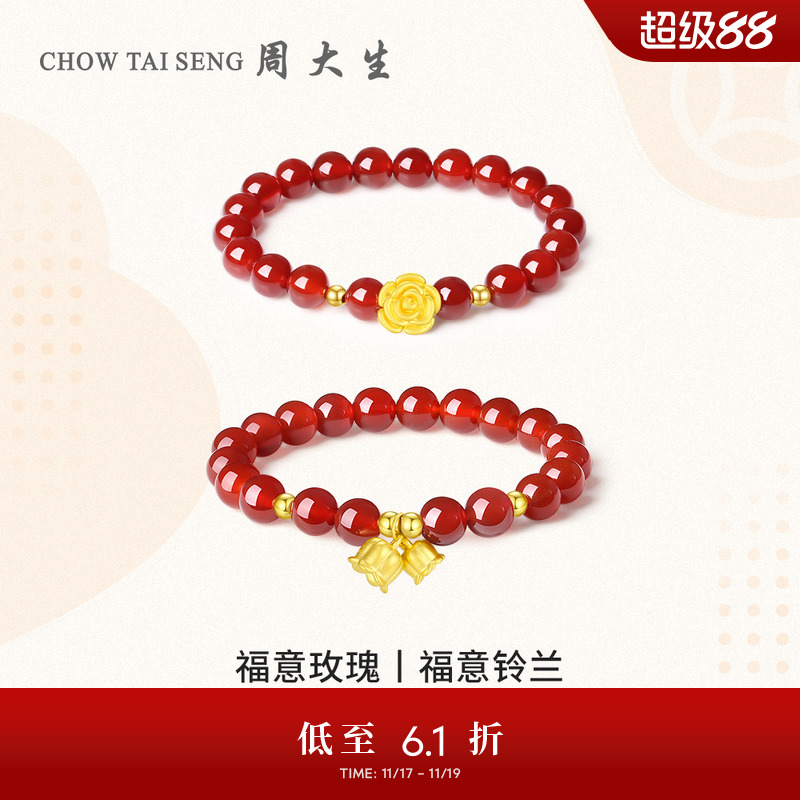 Chow Tai Sang gold bracelet women's pure gold chalcedony lily of the valley rose bracelet birthday gift for girlfriend high-end