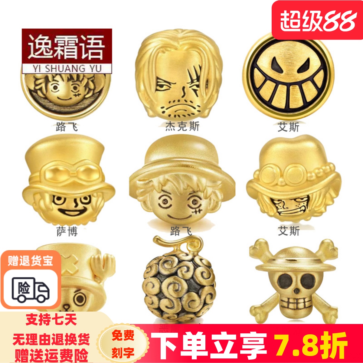 999 pure gold One Piece gold transfer beads Devil fruit Luffy/Chopper 3D hard gold bracelet beaded men's and women's models